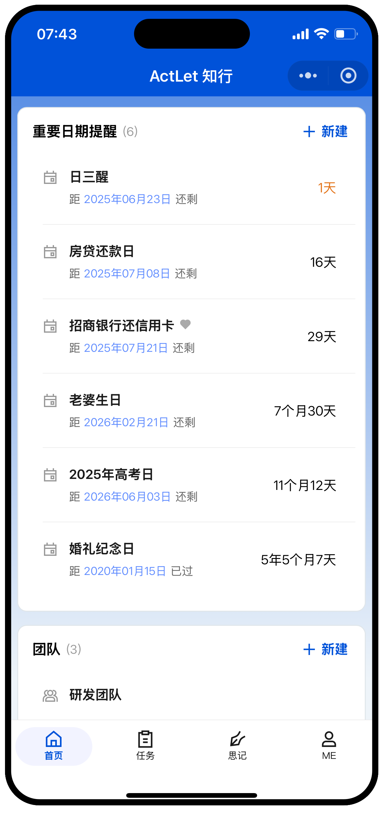 重要日期提醒