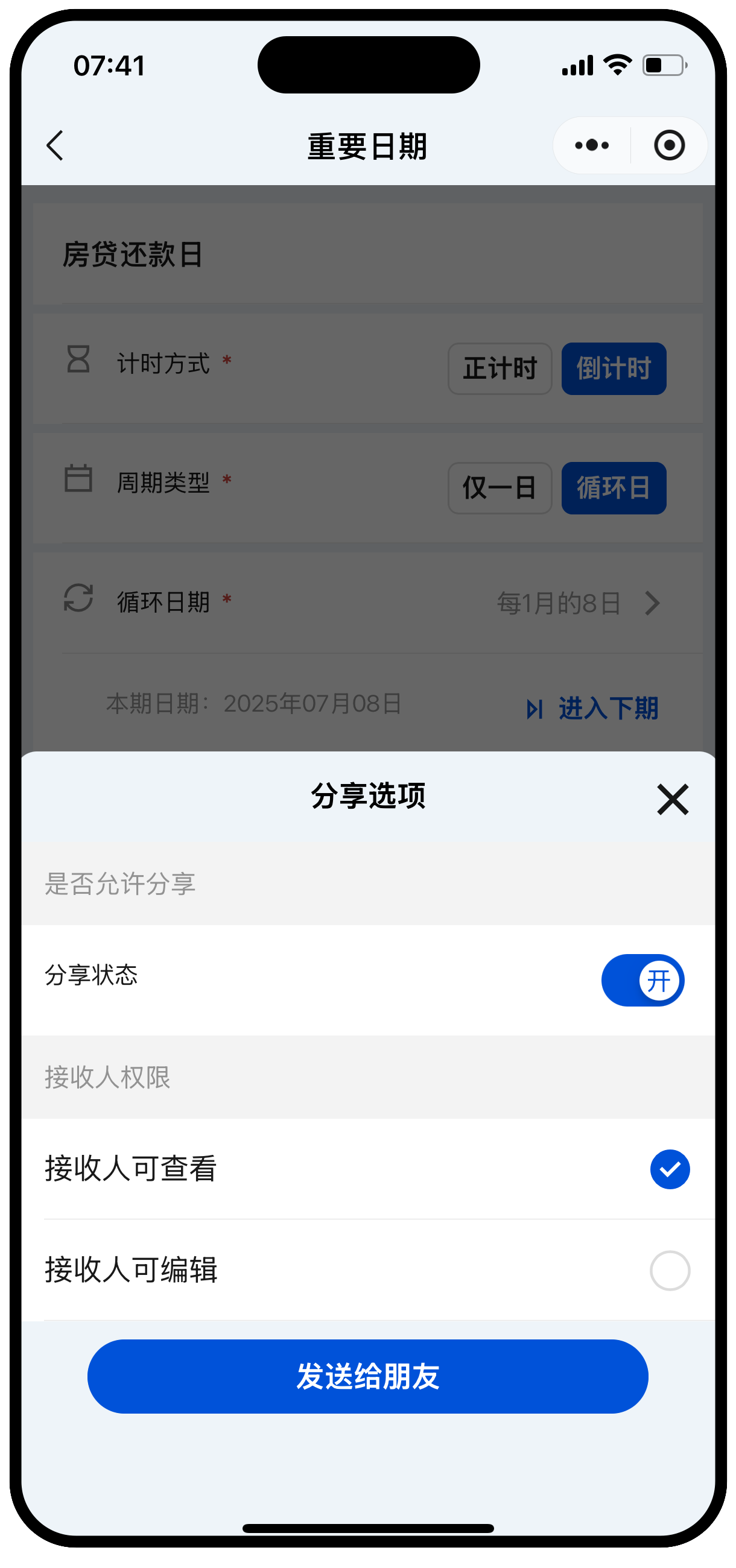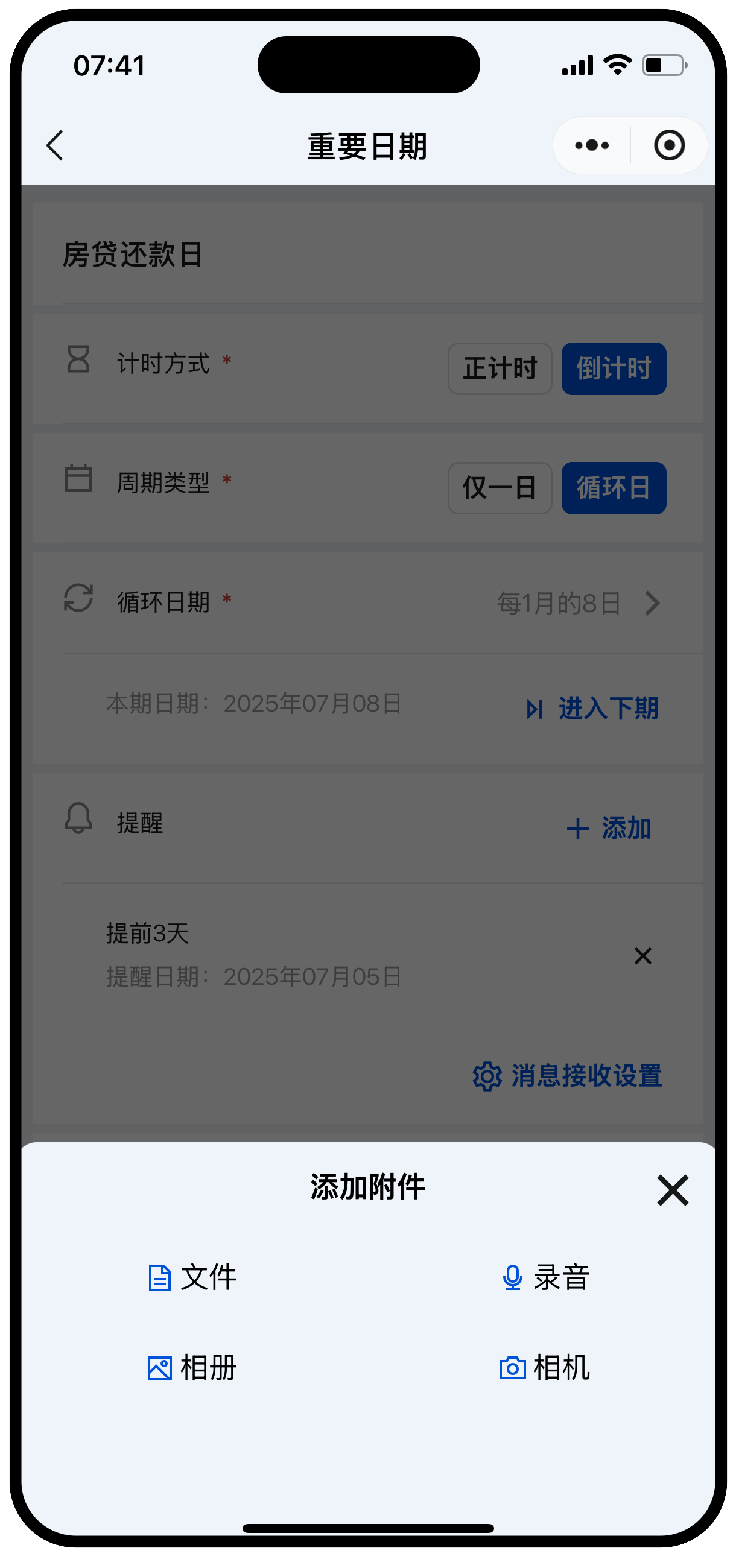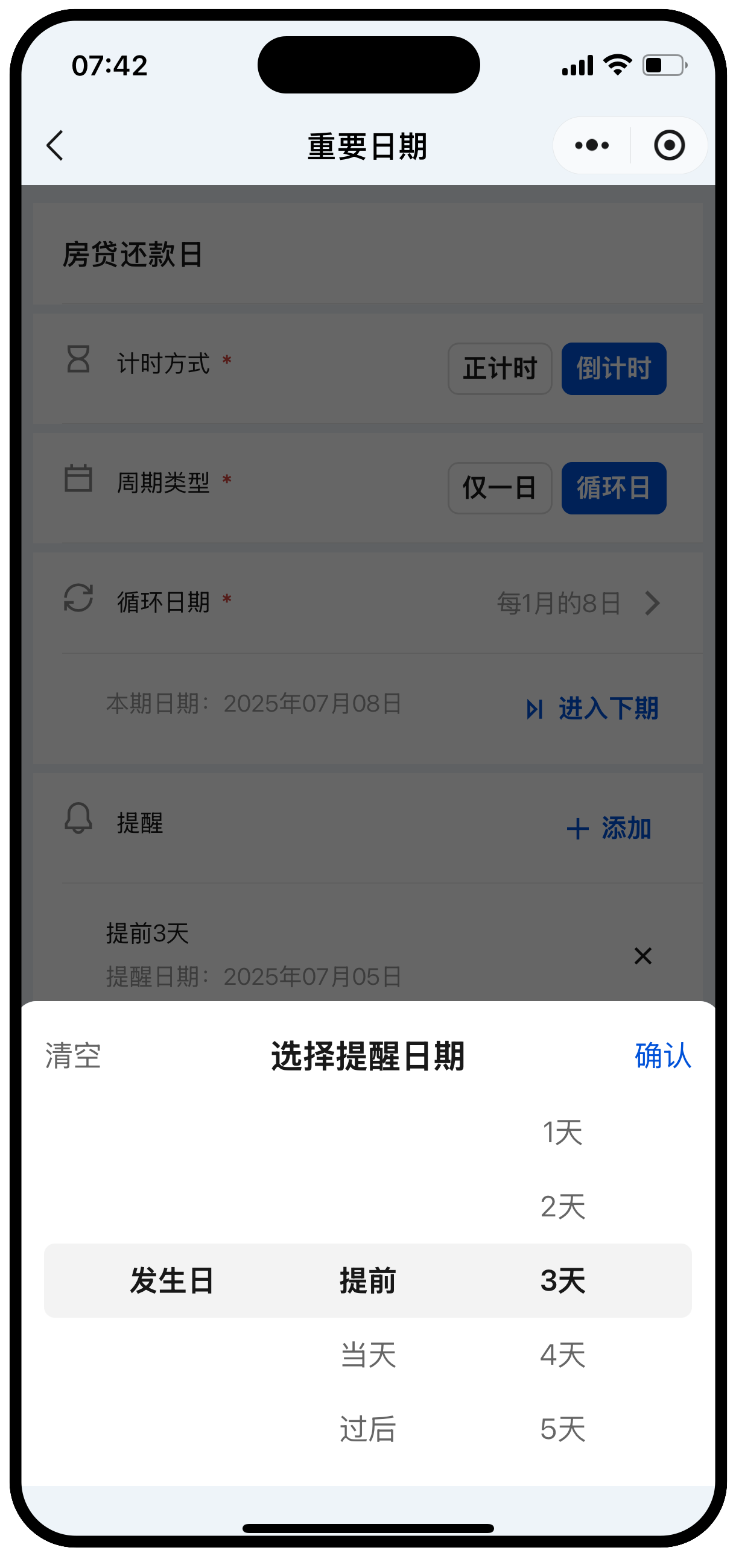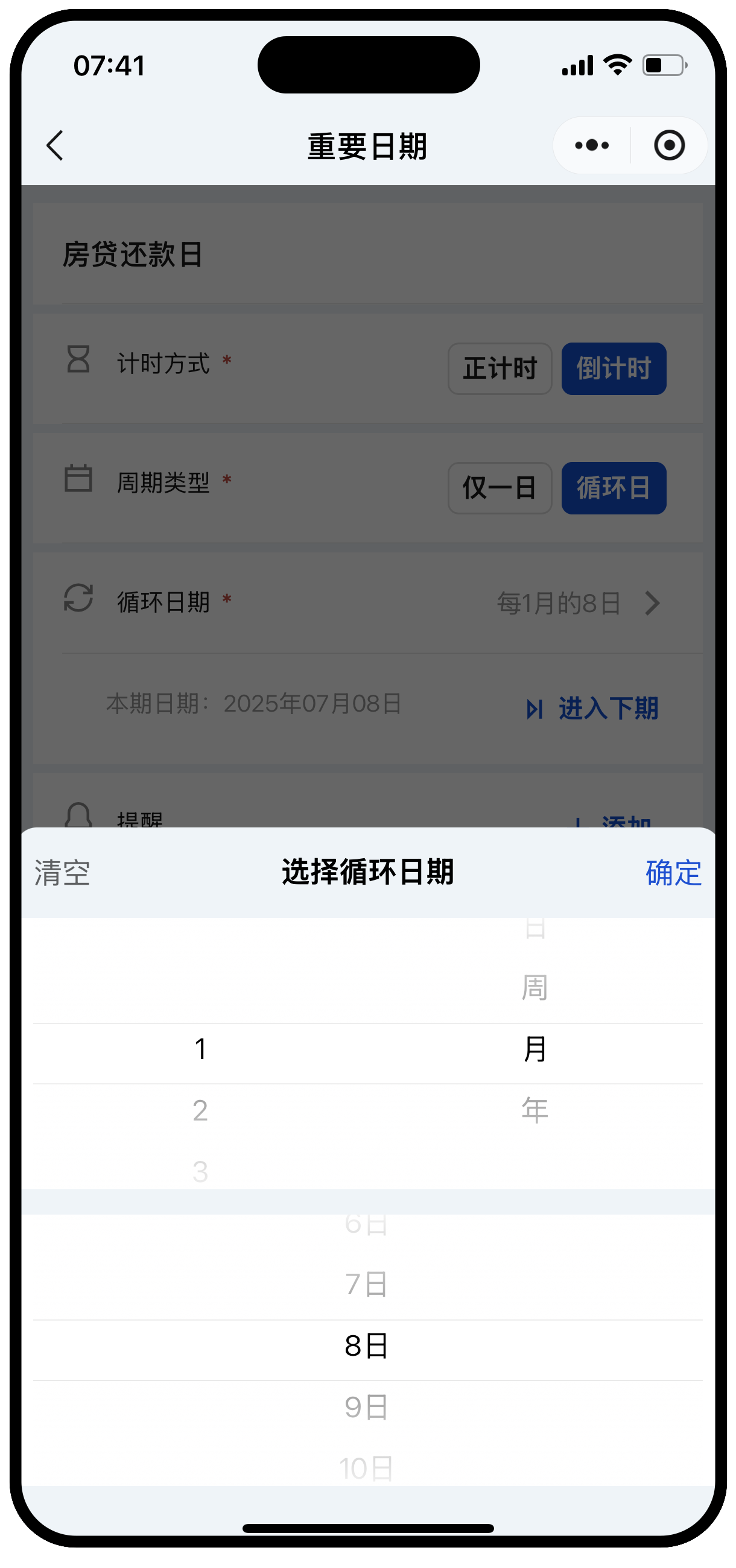 - 支持正计时、倒计时。可按公历或农历设置循环日期。