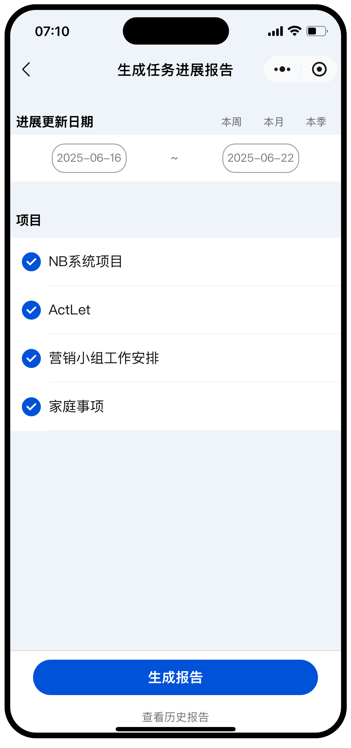 - 支持团队记录任务进展,可自动生成任务报告。